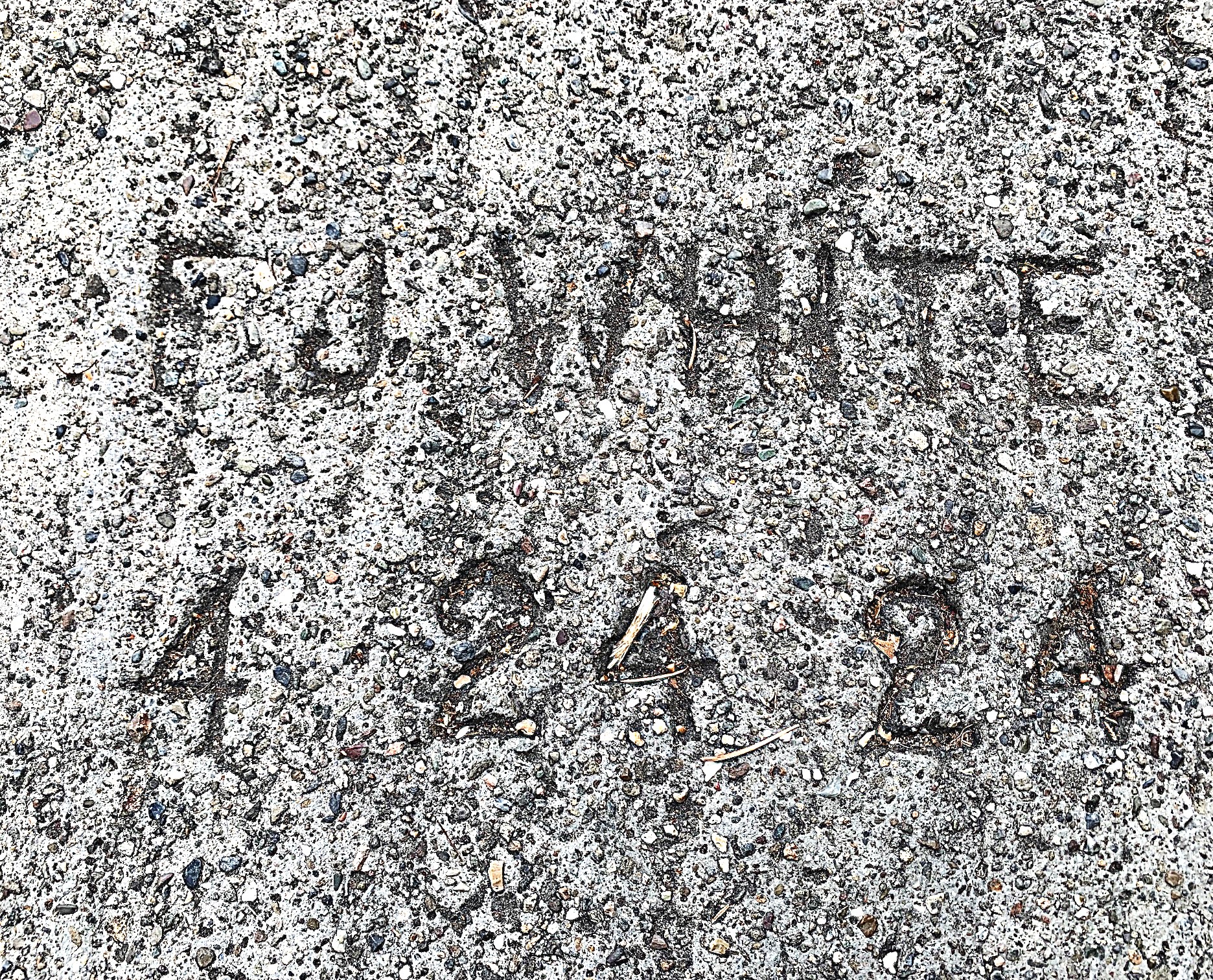 2 sidewalk stamps on Gilbert St near Mather St: F J White (4 24 24) and T J Garvey.